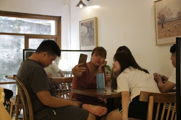 | Tụ tập bạn bè trong quán cà phê mà không cần đeo khẩu trang. |
