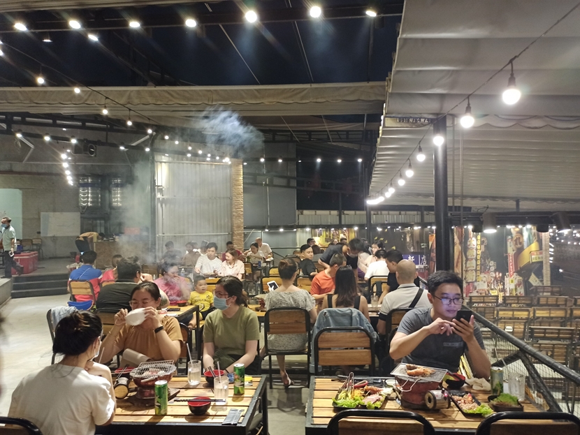 | Một quán nhậu trên đường Phạm Văn Đồng tập trung đông người. |