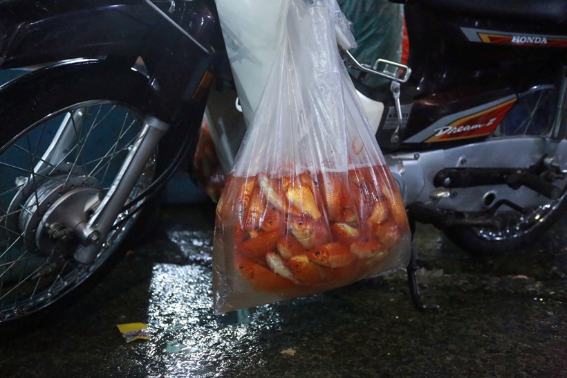 | Cá chép hầu hết là cá chép đỏ thương lái thu mua tại các tỉnh lân cận Hà Nội. |