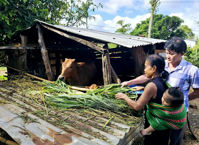 Đến năm 2024, khi được Nhà nước hỗ trợ một con bò cái sinh sản, bà xem đó như một sinh kế quý giá để góp phần phát triển kinh tế gia đình. “Con bò giống không chỉ là tài sản lớn, mà còn giúp người dân chúng tôi có thêm công ăn việc làm, ổn định thu nhập và có nguồn phân chuồng để bón cho cây trồng, giúp giảm phần nào chi phí sản xuất”, bà H’Bi Knul chia sẻ.