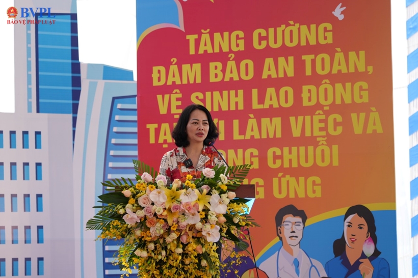 | Đồng chí Chu Thị Hạnh – Phó cục trưởng Cục An toàn lao động - Bộ Lao động Thương binh và Xã hội phát biểu chỉ đạo tại Lễ phát động. |
