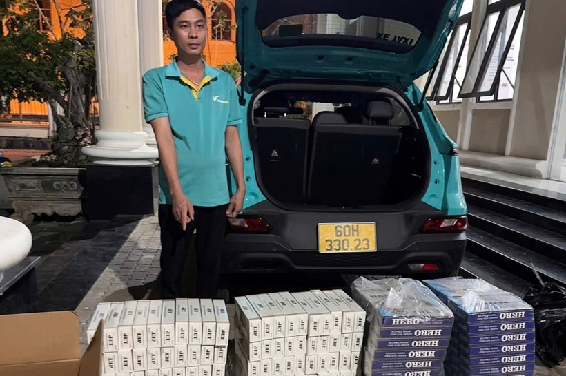 | Lái xe cùng số thuốc lá không rõ nguồn gốc. |