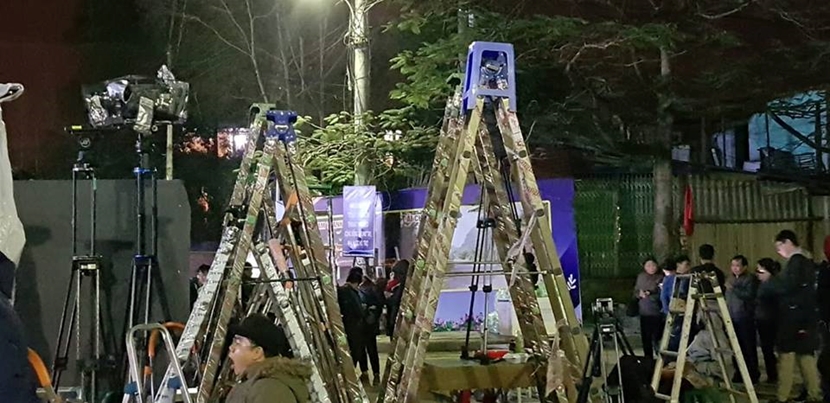 Không dễ kiếm một vị trí "đắc địa" vì các vị trí đều được bố trí theo sơ đồ của Ban tổ chức nên nhiều PV đành phải đi mua thang nhôm, quan điểm càng cao càng tốt để chụp hình.
