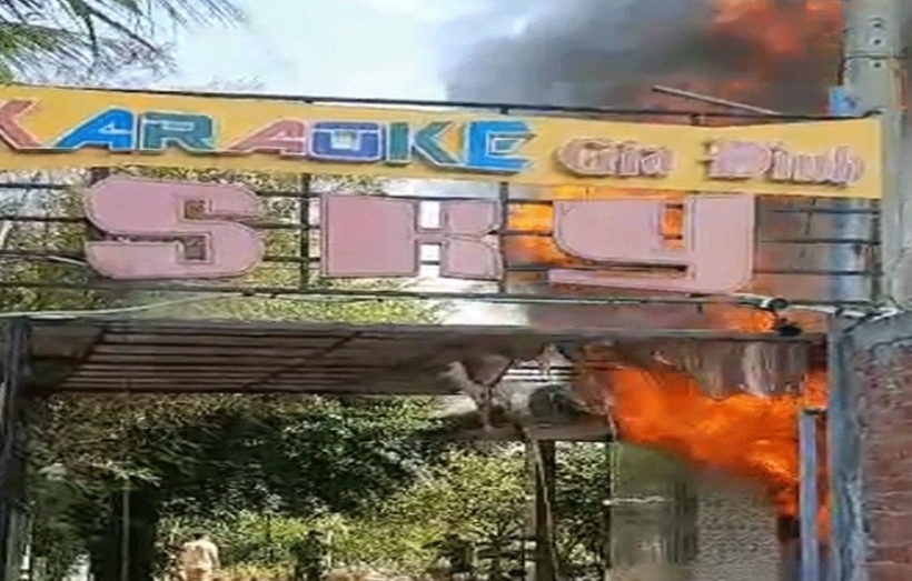 Nhiều người có mặt tại đây cho biết, vào khoảng 8h30', ngọn lửa bất ngờ bùng phát dữ dội tại quán karaoke Sky, khói đen mù mịt phủ kín cả khu vực, cột khói cao hàng chục mét. Ít phút sau, ngọn lửa nhanh chóng lan rộng cả 7 phòng hát tại quán karaoke này, thiêu rụi nhiều đồ đạt.
