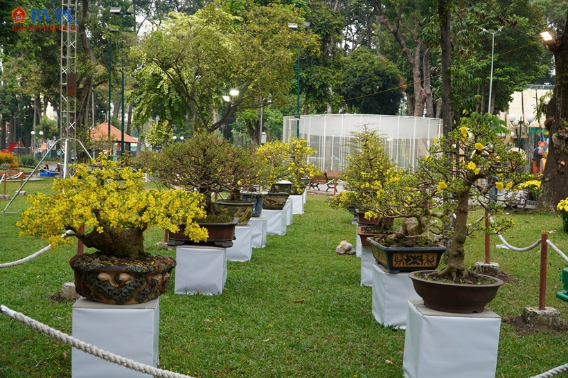| Dưới ánh nắng vàng ươm của những ngày giáp Tết Nguyên đán Bính Ngọ 2026, Hội hoa Xuân TP Hồ Chí Minh tại Công viên Tao Đàn hiện lên như một bức tranh thủy mặc sống động với những gốc mai vàng rực rỡ. |