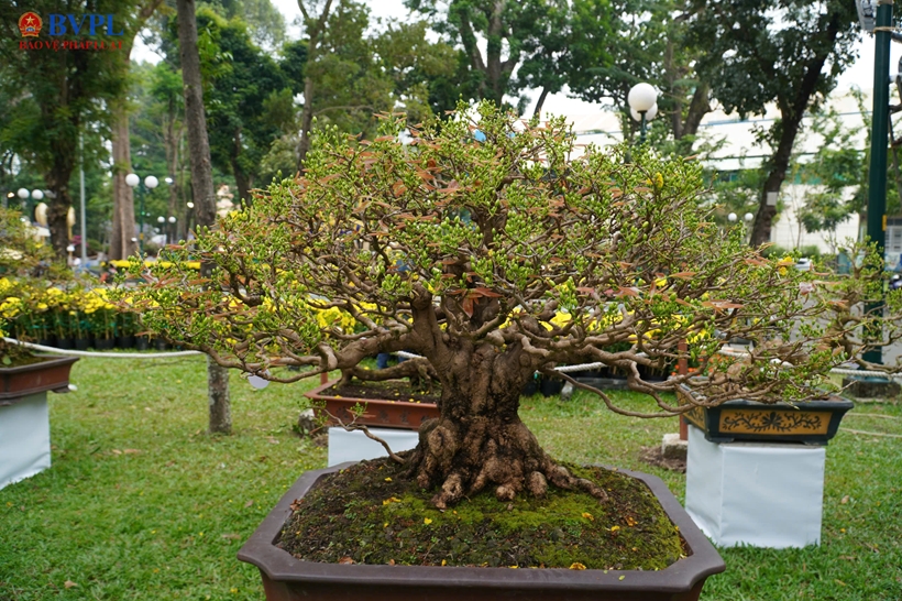 | Tại khu vực trưng bày, những gốc mai cổ thụ sần sùi, uốn lượn đầy uy quyền, minh chứng cho hàng chục năm dày công chăm sóc của các nghệ nhân đất phương Nam. |