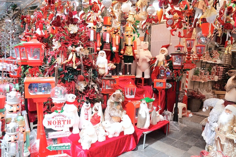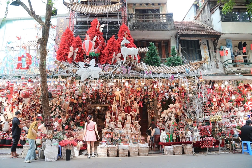| Dù Halloween đang cận kề, nhưng một số cửa hàng trên phố Hàng Mã đã khéo léo kết hợp trang trí thêm các chi tiết mang sắc màu Giáng sinh. |