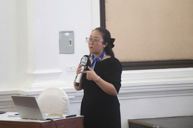 | Bà Lê Thị Mai Quyên - Tổng đài điện thoại quốc gia bảo vệ trẻ em (số 111), Cục Bà mẹ và Trẻ em (Bộ Y tế) chia sẻ về hiện trạng vấn đề bảo vệ trẻ em trên môi trường mạng và các chiến dịch nâng cao năng lực số cho trẻ em. Ảnh: Mạnh Dũng. |