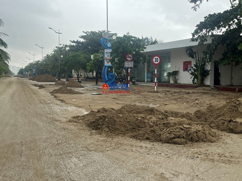 Sáng 6/10, trao đổi với Báo Bảo vệ pháp luật, ông Đặng Anh Đức, Chánh Văn phòng UBND phường Sầm Sơn cho biết: Những ngày qua, phường đã huy động lực lượng đoàn viên thanh niên, hội viên nông dân, phụ nữ, dân quân tự vệ, Công ty môi trường cùng đông đảo Nhân dân đã cùng tham gia dọn dẹp, khắc phục hậu quả bão để lại. Trong đó, có việc hoàn trả số lượng cát do bão số 10 tràn lên tuyến đường giáp biển Hồ Xuân Hương.