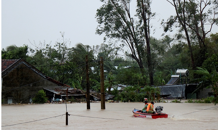 | Lực lượng chức năng nỗ lực tiếp cận những khu vực ngập sâu trên địa bàn tỉnh Đắk Lắk. |