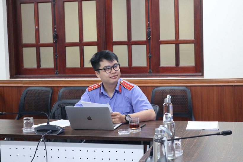 | Đồng chí Trần Sỹ Dương - Bí thư Đoàn thanh niên Trường Đại học Kiểm sát Hà Nội tham dự tại Diễn đàn. Ảnh Khánh Huyền |