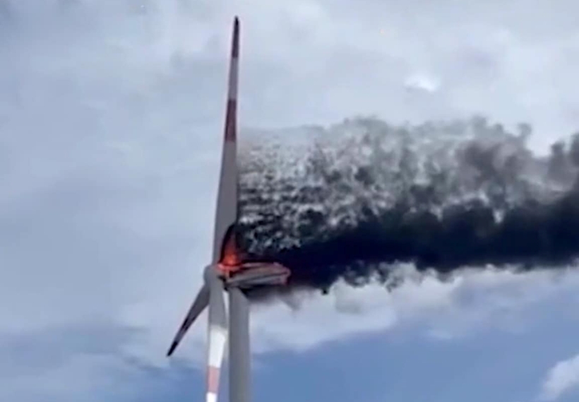 Các video được mạng xã hội chia sẻ cho thấy, lửa bốc cháy ngùn ngụt kèm theo khói đen đặc trên đỉnh tuabin.