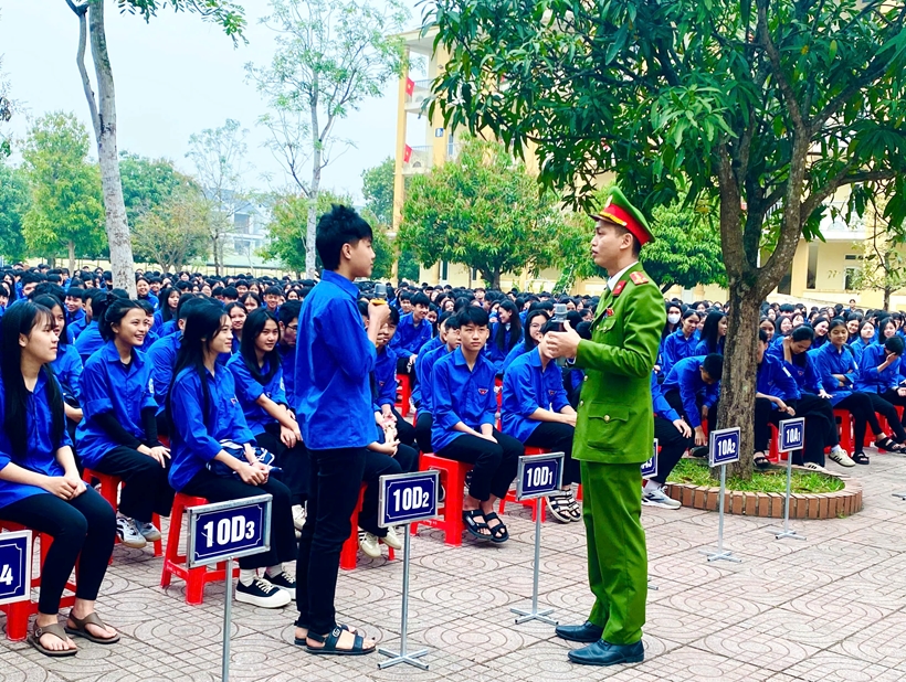 Trong không khí nghiêm túc nhưng gần gũi, buổi tuyên truyền đã mang đến nhiều nội dung thiết thực, sát với đời sống học đường như: quy định của pháp luật về an ninh trật tự, an toàn giao thông, phòng cháy, chữa cháy và cứu nạn, cứu hộ; công tác quản lý vũ khí, vật liệu nổ, pháo; phòng, chống ma túy, bạo lực học đường; cảnh giác với tội phạm công nghệ cao và xuất nhập cảnh trái phép.