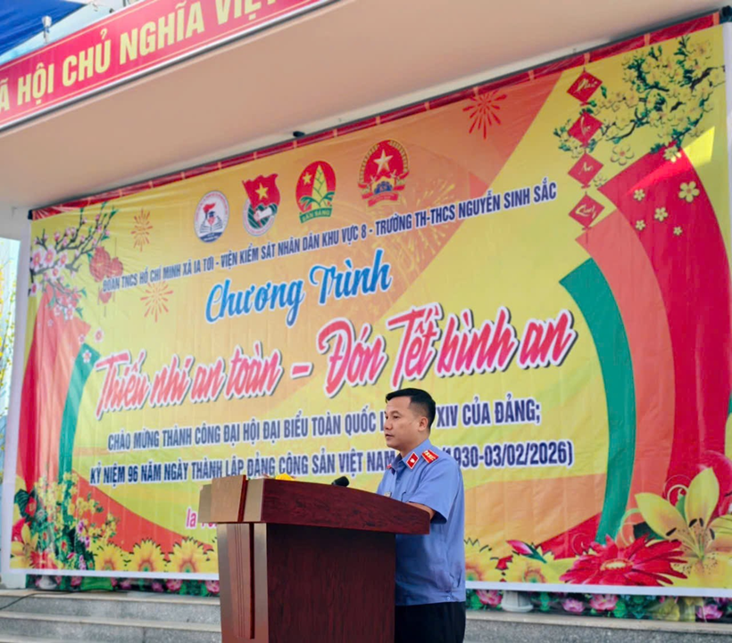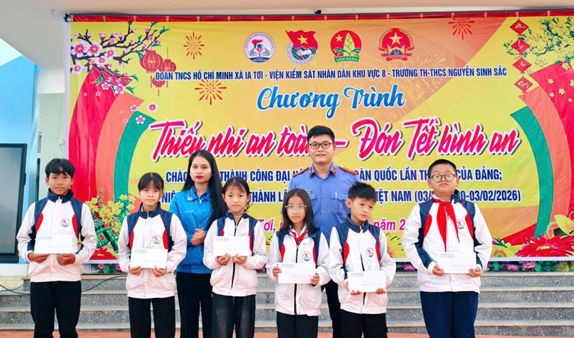 Ngày 9/2, Chi đoàn VKSND khu vực 8 (tỉnh Quảng Ngãi) đã phối hợp với Đoàn xã Ia Tơi, Trường TH-THCS Nguyễn Sinh Sắc tổ chức chương trình “Thiếu nhi an toàn, đón Tết bình an”.
