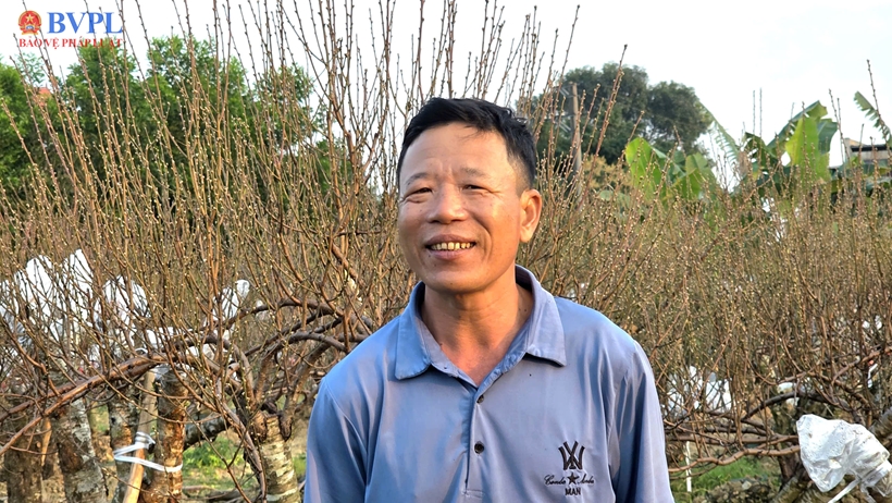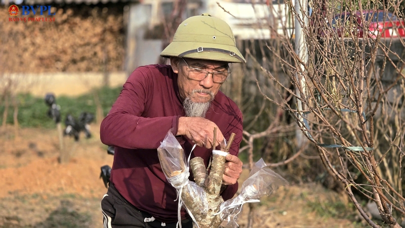 Dù đã gần 70 tuổi nhưng ông Hay vẫn cần mẫn bên những gốc đào. Ông Hay cho biết: "Tôi gắn bó cây đào từ nhỏ, gia đình tôi có hơn 6 sào trồng đào và có khoảng 700 gốc đào chuẩn bị xuất vườn. Dù năm nay có tháng nhuận và thời tiết nắng nóng hơn, nhưng nhờ chủ động điều chỉnh thời điểm tuốt lá và hãm nụ nên chất lượng hoa năm nay rất đạt. Những nụ hoa mập mạp, cánh hoa dày và sắc hồng thanh tao, nét đặc trưng vốn có của đào Xuân Du vẫn được giữ vững. Hiện tại, phần lớn diện tích trong vườn đã được các thương lái từ Quảng Ninh, Hải Phòng và Hà Nội đặt tiền cọc. Tôi tranh thủ trồng và ghép thêm cây mới cho kịp vụ sang năm."