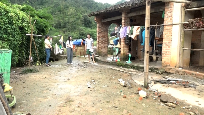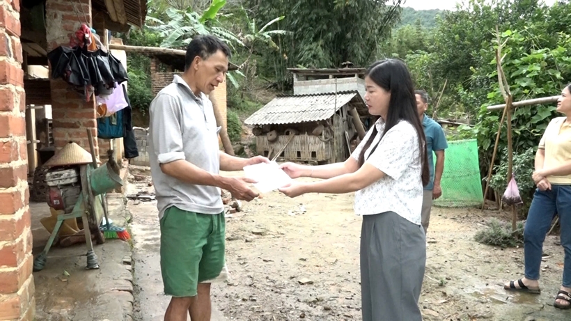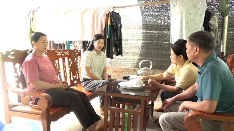 | Đồng chí Dương Thị Phương Quế, Chủ tịch UBND xã Ngân Sơn xuống thăm hộ gia đình có hoàn cảnh đặc biệt khó khăn tại xã. |