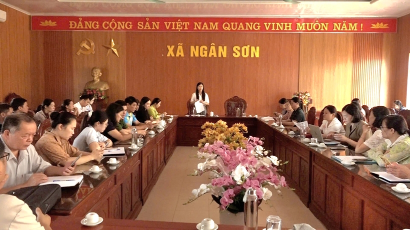 | Toàn cảnh cuộc họp Lãnh đạo xã Ngân Sơn công tác chuẩn bị xuống kiểm tra, rà soát các hộ nghèo tại xã. |