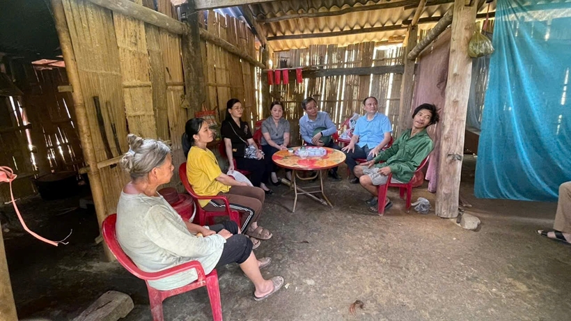 | Đồng chí Dương Thị Phương Quế, Chủ tịch UBND xã Ngân Sơn xuống các hộ dân có hoàn cảnh khó khăn động viên thăm hỏi. |
