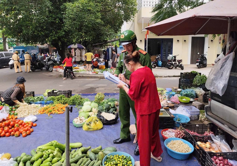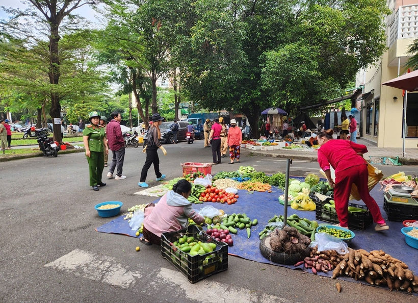 Theo đó, khoảng 7h, lực lượng chức năng phát hiện nhiều người dân bày bán rau củ, trái cây xuống lòng đường. Ngoài ra, rất nhiều xe máy do người bán, người mua dựng tràn lan dưới lòng đường gây cản trở giao thông, tiềm ẩn nguy cơ tai nạn giao thông.