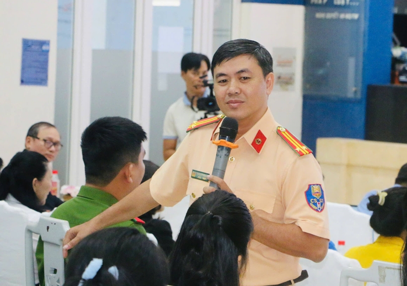 | Trung tá Đinh Minh Vương - Đội Sát hạch, cấp giấy phép lái xe Phòng Cảnh sát giao thông Công an TP Hồ Chí Minh nêu những kỹ năng tham gia giao thông an toàn. |