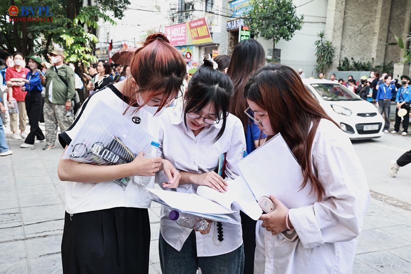 |  Các thí sinh dự thi  tốt nghiệp THPT năm 2025 tại Trường THPT Mỹ Đình (Hà Nội).  |