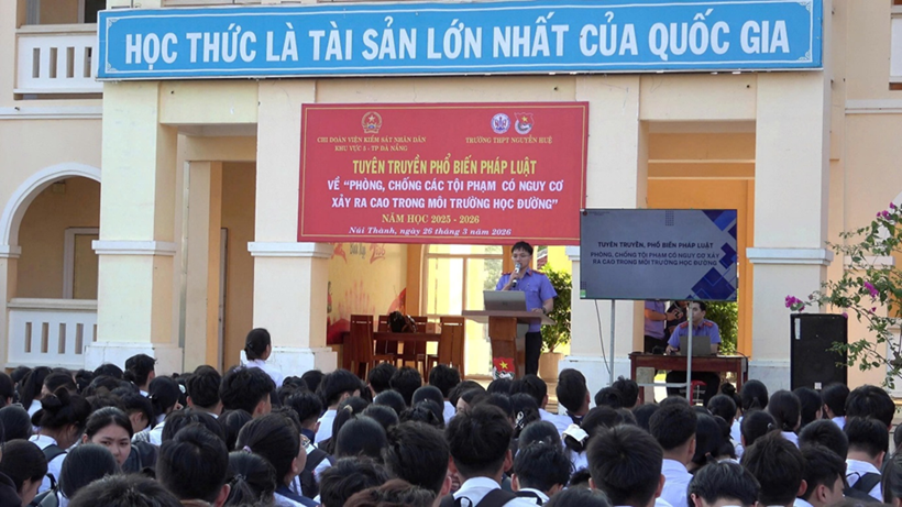 Chi đoàn VKSND khu vực 5, TP Đà Nẵng đã phối hợp cùng Đoàn thanh niên trường THPT Nguyễn Huệ (xã Núi Thành, TP Đà Nẵng) tổ chức chương trình tuyên truyền pháp luật với chủ đề “Phòng, chống các loại tội phạm có nguy cơ xảy ra cao trong môi trường học đường”.
