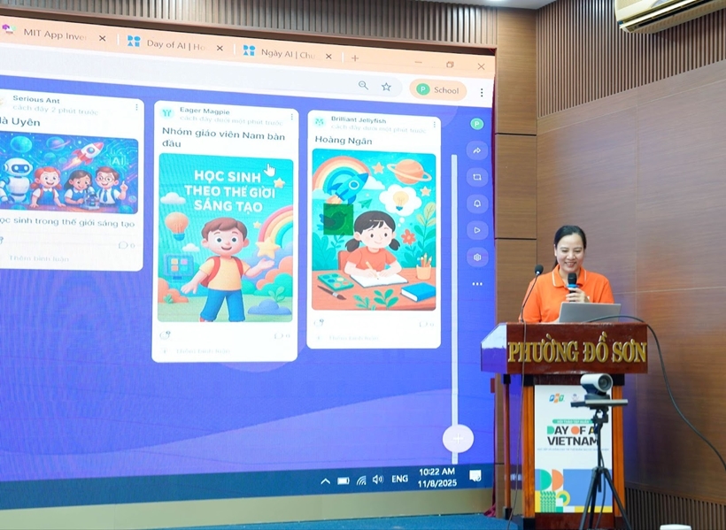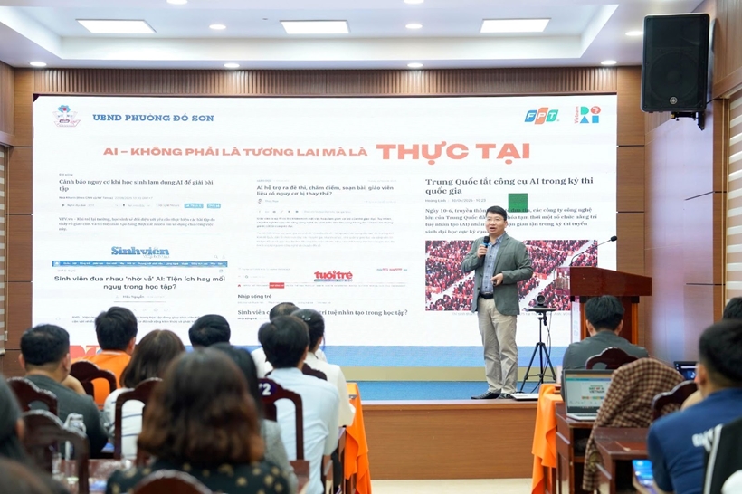 Tại chương trình, ông Nguyễn Hoàng Anh – đại diện Sở GD&ĐT TP Hải Phòng đã mang đến bức tranh tổng quát về “AI và tương lai ngành Giáo dục Hải Phòng”, trong đó nhấn mạnh rằng việc ứng dụng AI không chỉ giúp đổi mới phương pháp dạy học, mà còn mở ra cơ hội phát triển năng lực sáng tạo, tư duy phản biện và khả năng thích ứng cho học sinh trong bối cảnh toàn cầu hóa.