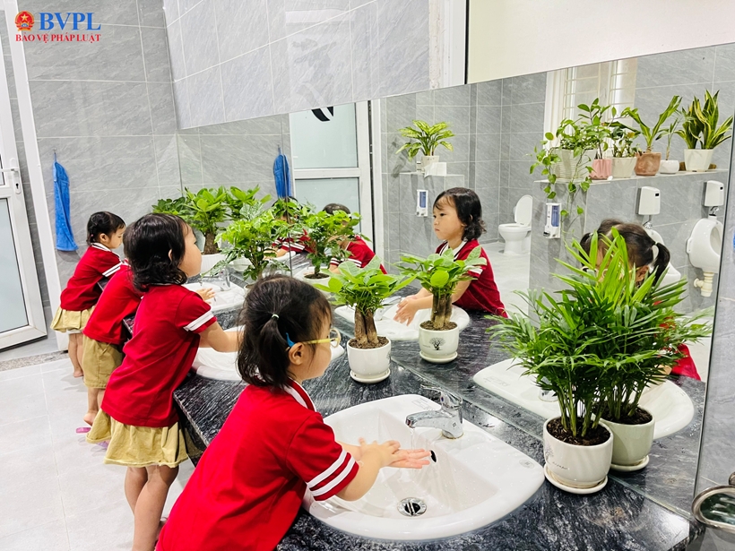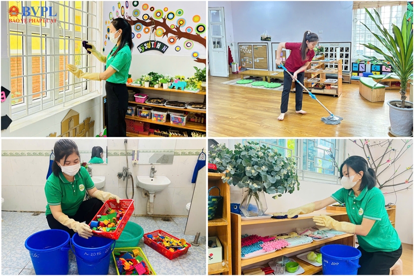 Bên cạnh đó, nhà trường đặc biệt chú trọng công tác vệ sinh môi trường. Các lớp học, đồ dùng, đồ chơi và bề mặt tiếp xúc được vệ sinh, khử khuẩn thường xuyên hằng ngày; đồng thời thực hiện khử khuẩn định kỳ hằng tuần theo đúng quy định. Trong trường hợp phát hiện ca nghi nhiễm, việc khử khuẩn sẽ được tiến hành ngay trong ngày.