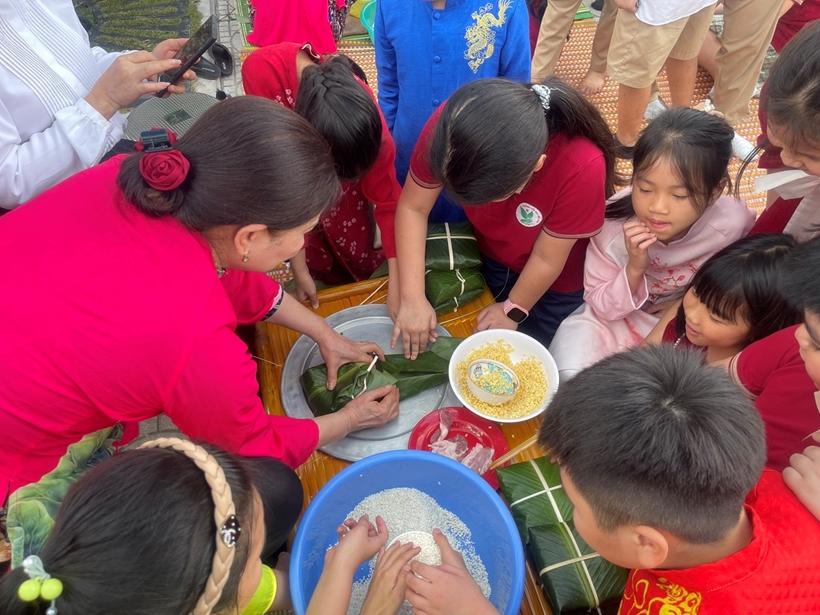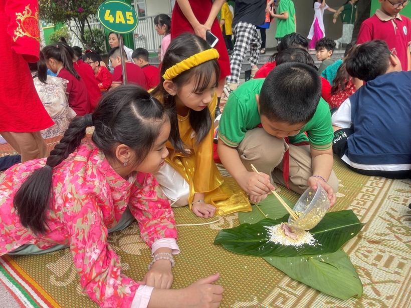 Học sinh Hà Nội hào hứng gói bánh chưng, tìm hiểu về Tết cổ truyền dân tộc