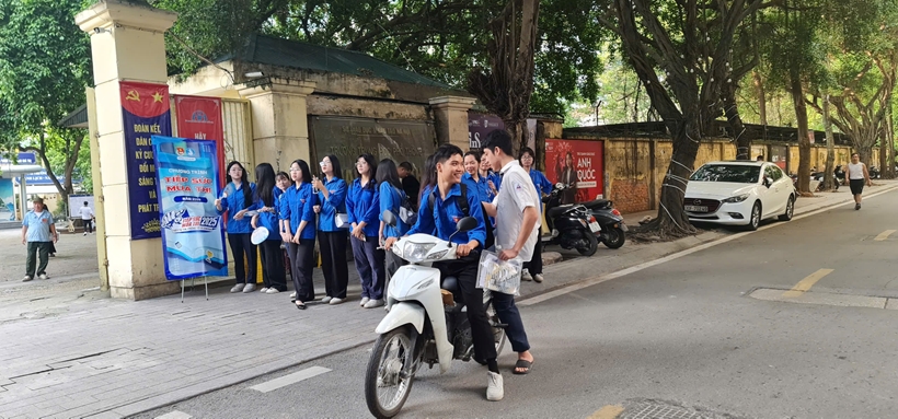 | Thí sinh đến địa điểm thi khá sớm trên địa bàn quận Ba Đình, thi sính sẽ thi môn đầu tiên Kỳ thi tốt nghiệp THPT năm 2025. Ảnh: Thy Khanh |