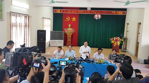 | Ông Mai Văn Trinh chủ trì buổi họp báo công bố kết luận điểm thi cao bất thường ở Sơn La trưa 23/7. Ảnh: CL |
