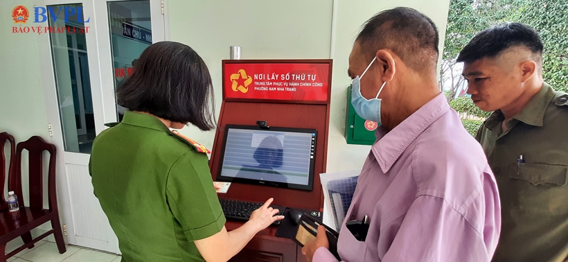 | Cán bộ Công an phường Nam Nha Trang hỗ trợ người dân khi giải quyết thủ tục hành chính. Ảnh: NH. |