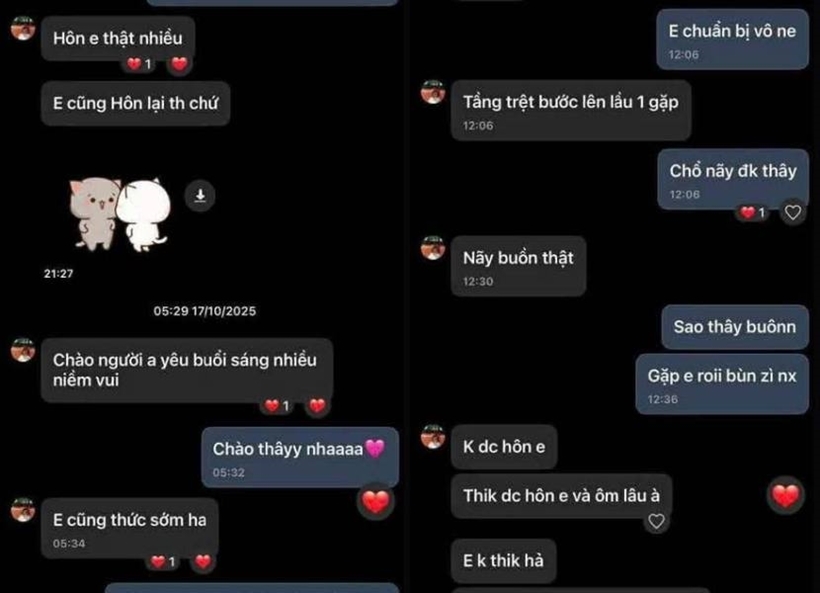 Ngày 22/10/2025, Ban Giám hiệu mời thầy N.V.T. để trao đổi sự việc xảy ra giữa thầy N.V.T. và học sinh N.T.T.L. Sau khi nghe trình bày bản tường trình của học sinh, ông N.V.T. thừa nhận có nhắn tin thân mật qua lại, nhưng khẳng định không có hành động đụng chạm vào cơ thể học sinh. Ông N.V.T. nhận lỗi đã sai khi nhắn tin thân mật với học trò.