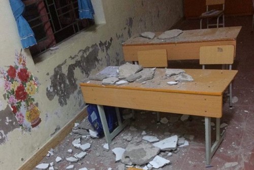 Lớp học đã xuống cấp nghiêm trọng dẫn tới tai nạn hi hữu: mảng trần nhà rơi trúng đầu khiến 3 học sinh lớp 1C trường tiểu học Lý Học (huyện Vĩnh Bảo, Thành phố Hải Phòng) phải nhập viện cấp cứu.