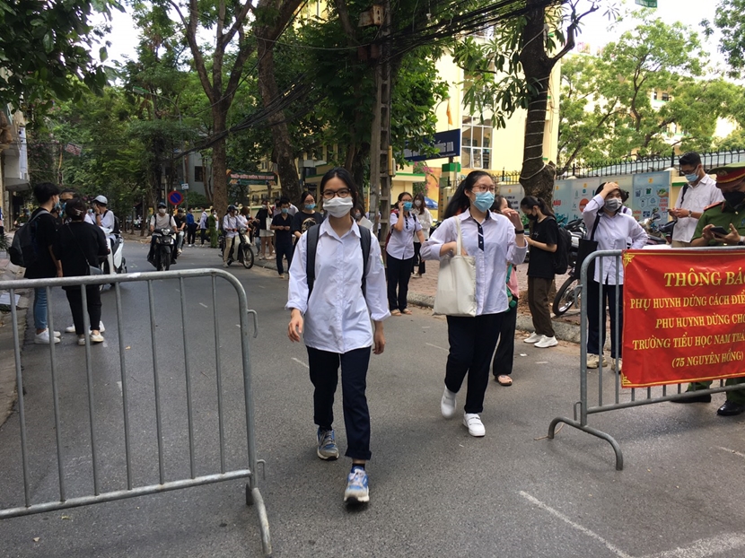Như tại Trường THPT Phan Huy Chú (quận Đống Đa, Hà Nội), thí sinh vào làm thủ tục dự thi THPT khoảng 30 phút.