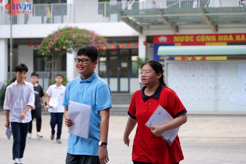 | Thí sinh vui mừng khi hoàn thành môn thi đầu tiên trong kỳ thi tuyển sinh vào lớp 10 công lập năm học 2025–2026. |