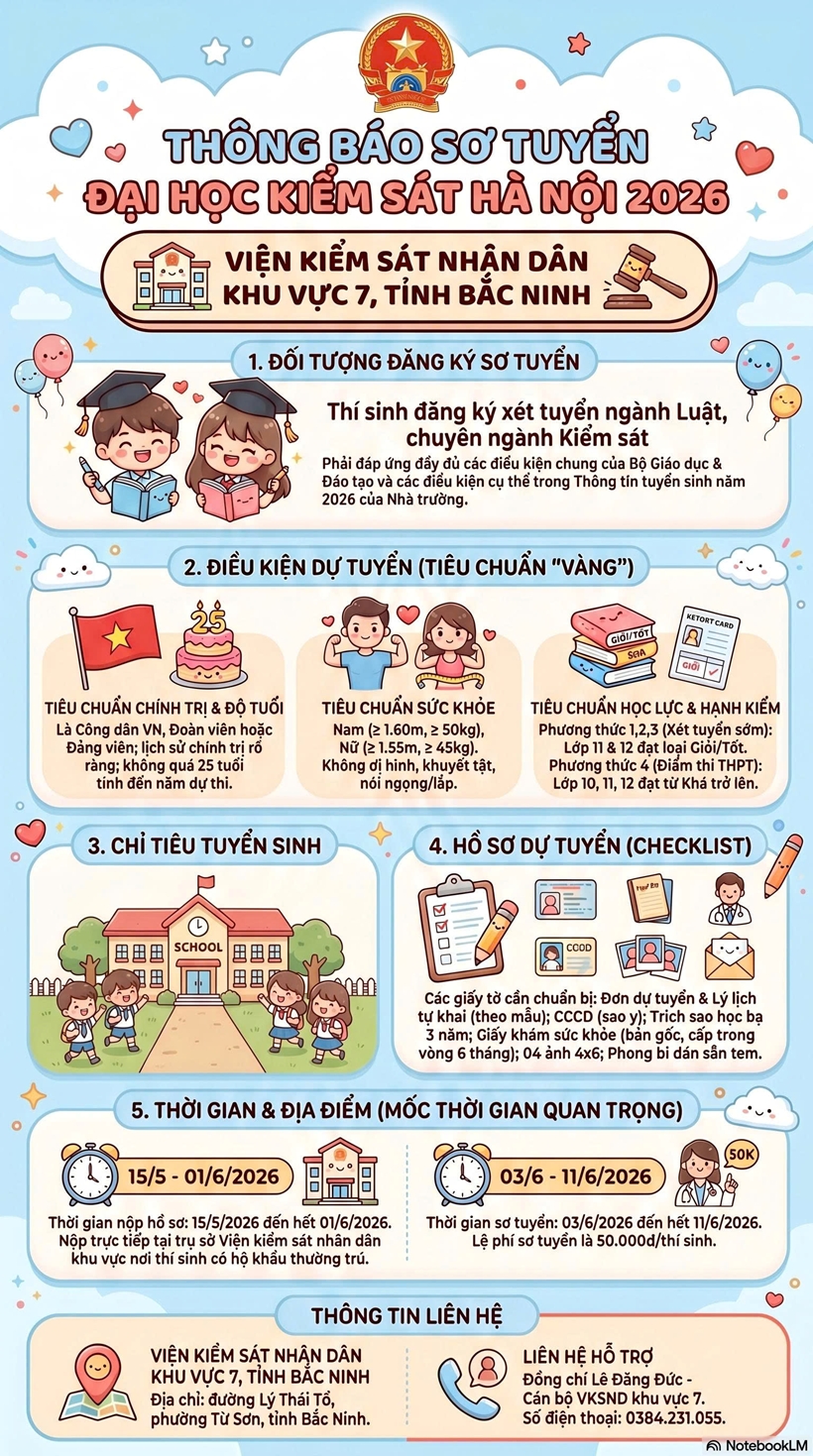 Ngoài việc niêm yết tại bảng tin của trường, VKSND khu vực 7 còn đề nghị Ban giám hiệu nhà trường đăng tải thông báo sơ tuyển trên fanpage của trường để thông tin sơ tuyển vào trường Đại học Kiểm sát tới gần hơn với các em học sinh.