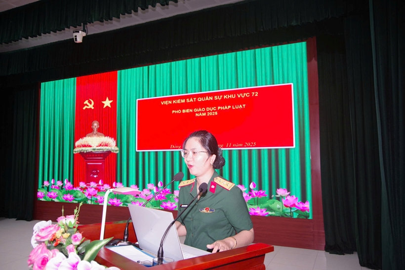Tại Hội nghị, báo cáo viên của VKS Quân sự Khu vực 72 đã phổ biến, giáo dục pháp luật chuyên đề: “Thông báo tình hình vi phạm kỷ luật, pháp luật trong Quân đội và những biện pháp phòng ngừa vi phạm pháp luật, kỷ luật”.