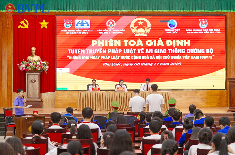 Phiên tòa giả định tuyên truyền pháp luật được tổ chức với sự phối hợp cùng Đoàn đặc khu Phú Quốc và Trường THPT Phú Quốc, qua đó giúp bảo đảm trật tự, an toàn giao thông đường bộ cho học sinh Trường THPT Phú Quốc.