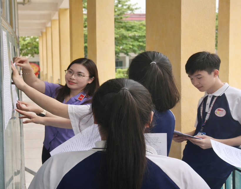 | Cán bộ kiểm sát niêm yết thông báo tuyển sinh trên bảng tin. |