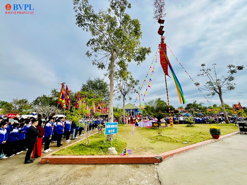 | Nghi lễ dựng cây nêu ngày Tết được tổ chức trang nghiêm tại Di sản văn hóa thế giới Thành nhà Hồ. |