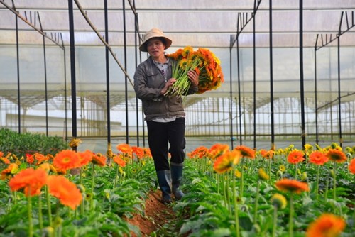 | Thu hoạch hoa ở làng hoa Vạn Thành, Đà Lạt. |