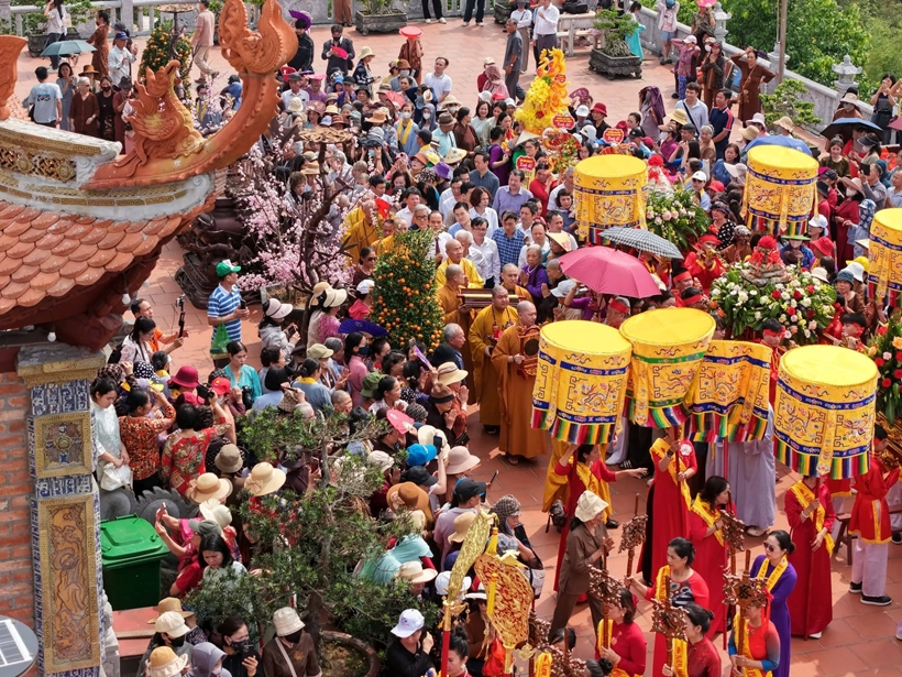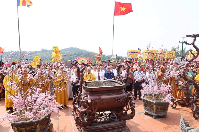Các đại biểu, chư tôn đức, Phật tử cùng đông đảo nhân dân và du khách đã thực hiện nghi thức dâng hương tưởng niệm các Vua Hùng và các bậc tiền nhân, thể hiện lòng tri ân sâu sắc đối với công lao dựng nước và giữ nước của cha ông.