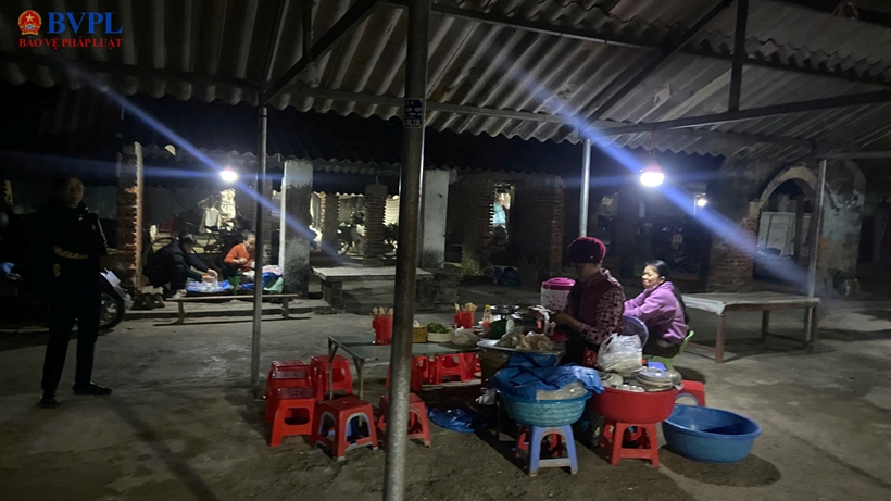 Từ khi màn đêm còn chưa kịp tan, khi hơi sương vẫn phủ trắng mái rạ, những người bán hàng đã lục đục gánh hàng ra chợ. Mới 3 giờ sáng, quanh khu chợ đã rộn ràng tiếng chân, tiếng nói cười xen lẫn tiếng sột soạt của những gánh hàng nặng trĩu.
