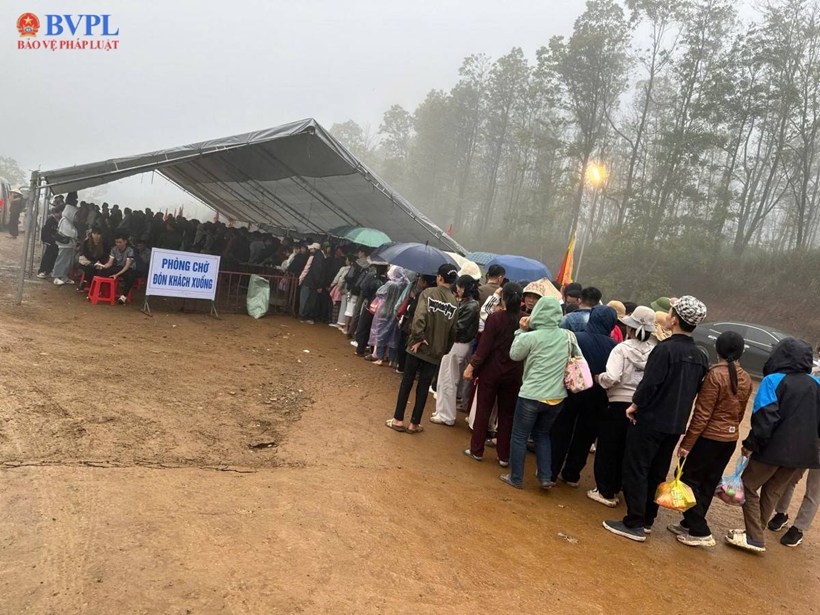 | Dòng người đổ về Am Tiên, mặc dù trời mưa gió. |