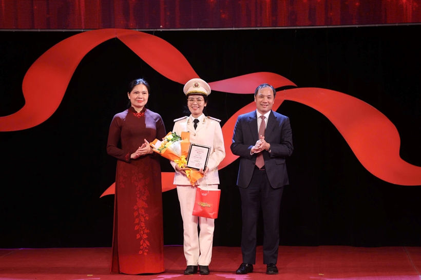 | Bà Hà Thị Nga, Ủy viên Trung ương Đảng, Phó Chủ tịch Ủy ban Trung ương Mặt trận Tổ quốc Việt Nam và ông Hoàng Trung Dũng, Uỷ viên Trung ương Đảng, Tổng Biên tập Tạp chí Cộng sản trao Giải Đặc biệt cho tác giả Phạm Thị Thi (Cà Mau). |