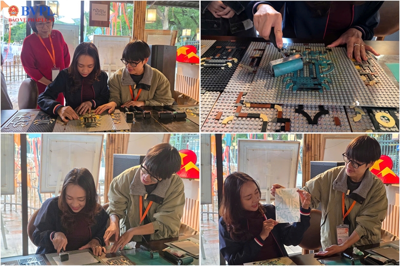 | Người dân được trải nghiệm ghép và in hình lên giấy dó. |