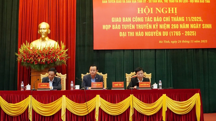Sáng nay (26/11), Ban Tuyên giáo và Dân vận Tỉnh ủy Hà Tĩnh tổ chức họp báo thông tin kế hoạch tuyên truyền và các hoạt động hướng tới Lễ kỷ niệm 260 năm ngày sinh (1765 - 2025), tưởng niệm 205 năm ngày mất Đại thi hào Nguyễn Du.