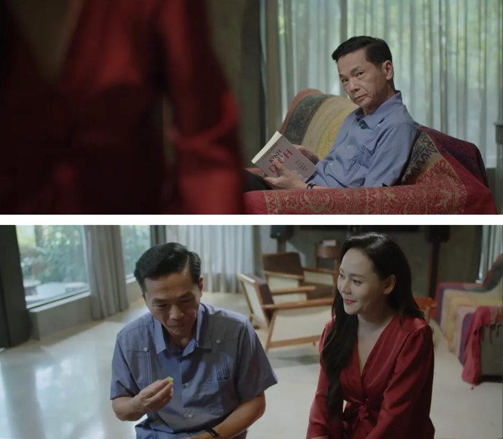 Khi Triển đang trò chuyện cùng ông Sách, Trinh từ trong bếp bước ra gợi cảm, đầy tự nhiên như thể đây là “ngôi nhà chung” của họ. Hình ảnh ấy như một cú đánh mạnh, đẩy toàn bộ những nghi ngờ trước đó thành sự thật phơi bày trọn vẹn.