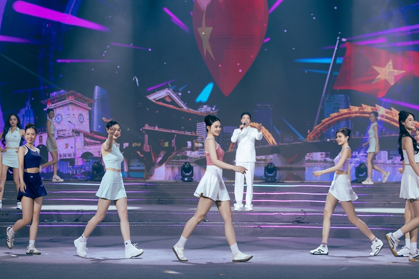 Ngay sau đó, 44 ứng viên tiếp tục bước vào vòng thi trang phục thể thao. Những thiết kế khỏe khoắn đã tôn vinh vẻ đẹp trẻ trung, năng động của các cô gái và truyền tải thông điệp về tinh thần thể thao, ý thức rèn luyện sức khỏe.